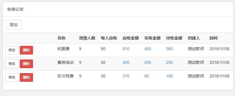 用(yòng)于管理(lǐ)學生(shēng)的(de)班費(fèi),包括學生(shēng)管理(lǐ)、班費(fèi)收取、班費(fèi)•支出、班級流水(shuǐ)等管理(lǐ)。包含手機(jī)端、網頁端。