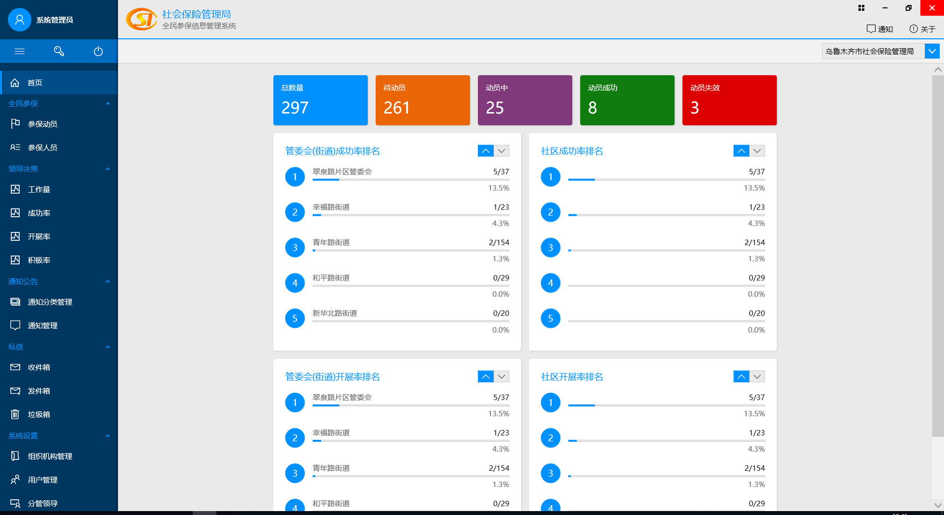 用(yòng)于維護居民(mín)的(de)參保動員(yuán)情況,實時(shí)統計(jì)各個(gè)部門(mén)的(de)參保覆蓋率、積極率、成功率的(de)信息系統。包含手機(•jī)端、網頁端。