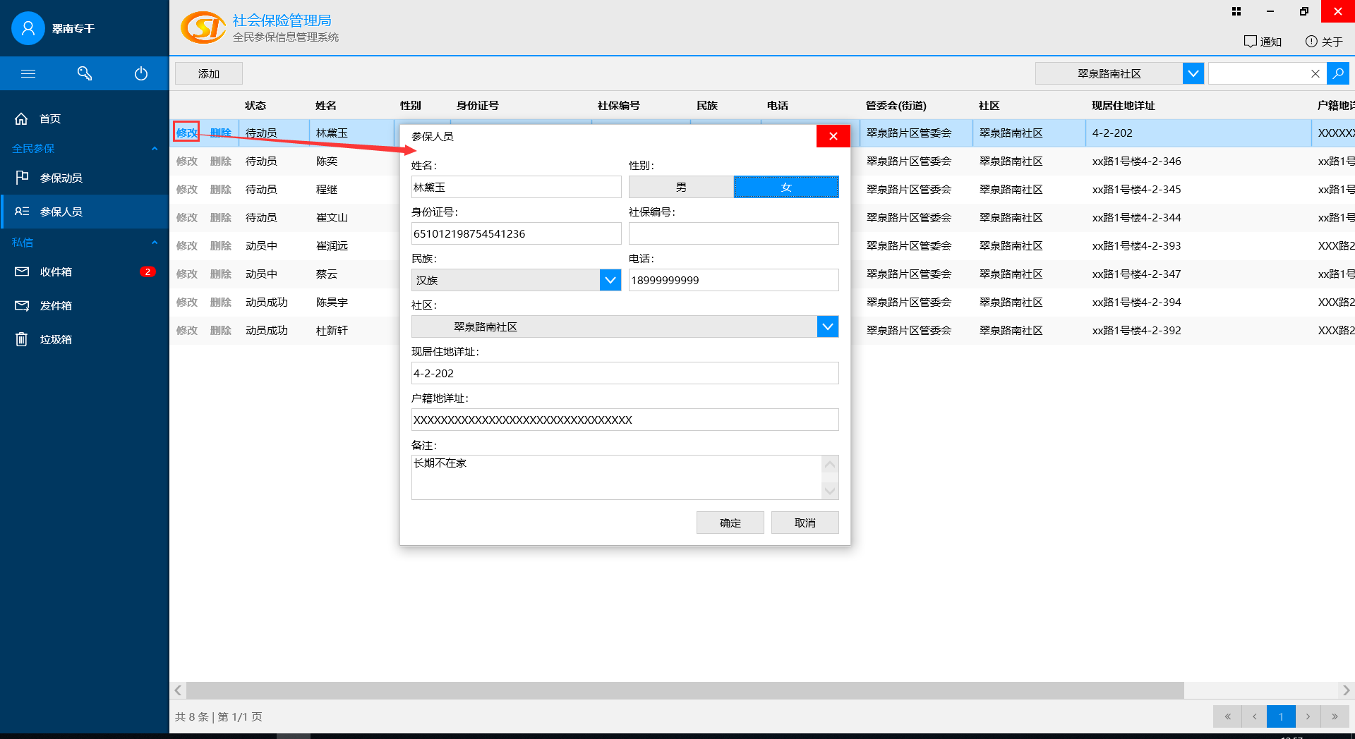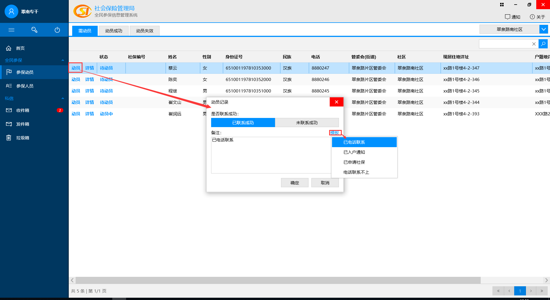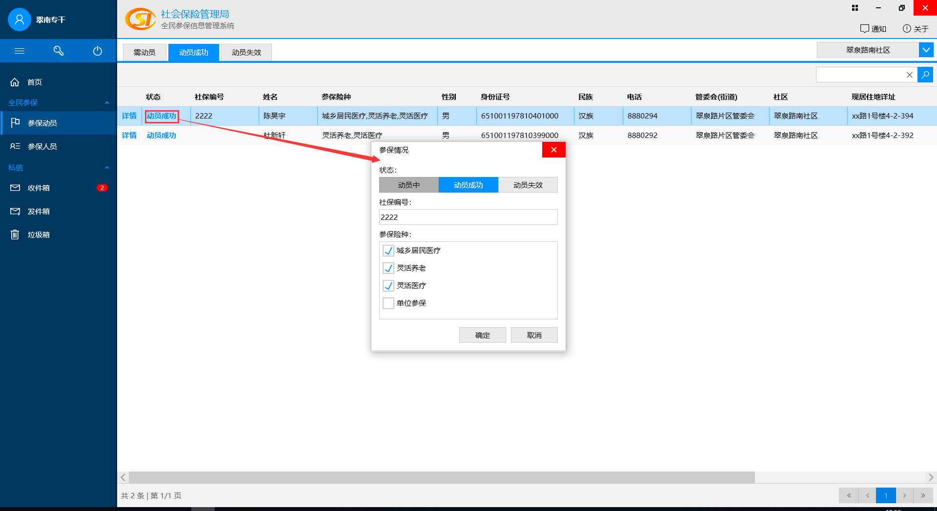 動員(yuán)成功,修改參保情況