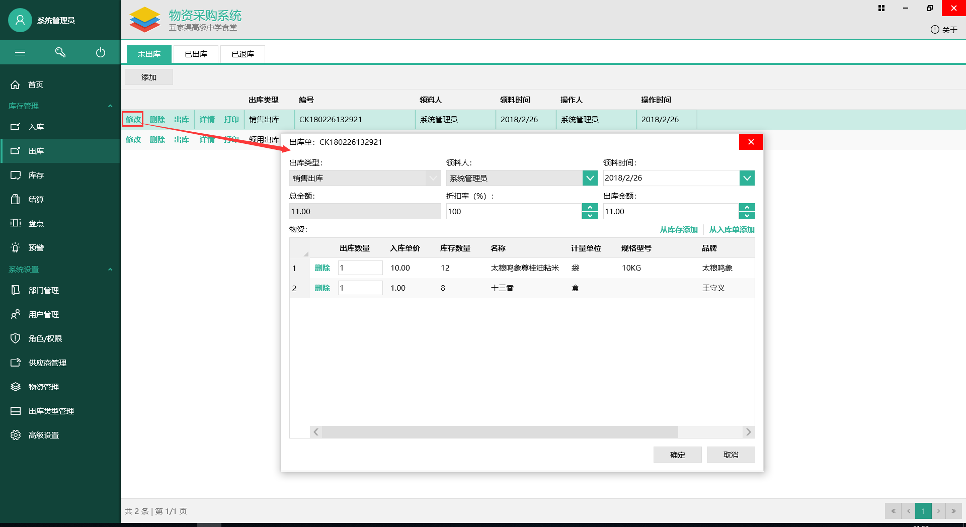 維護出庫類型管理(lǐ),不(bù)同種出庫類型對(duì)應的(de)折扣